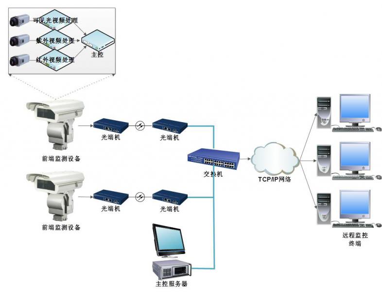 系統(tǒng)可實(shí)現(xiàn)對(duì)紫外、紅外和可見(jiàn)光圖像的遠(yuǎn)程傳輸和監(jiān)控, 超溫、電暈超標(biāo)報(bào)警提示。通過(guò)遠(yuǎn)程對(duì)攝像機(jī)控制,預(yù)制定位,遠(yuǎn)程切換,自動(dòng)巡視等。能夠支持多場(chǎng)所的中央監(jiān)控,不受地理限制,多個(gè)用戶可同時(shí)監(jiān)控同一前端,發(fā)生異常自動(dòng)抓拍,同時(shí)自動(dòng)啟動(dòng)錄像機(jī),具有很好的兼容性及可擴(kuò)展性。提高運(yùn)行人員對(duì)設(shè)備缺陷的識(shí)別能力和預(yù)見(jiàn)性。